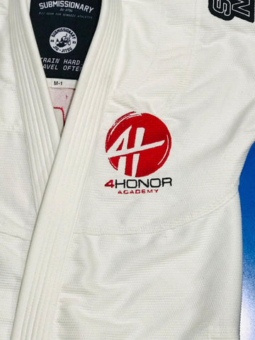 - Logos placed on jacket, sleeves, pants, rash guards — front, back, wherever you need.